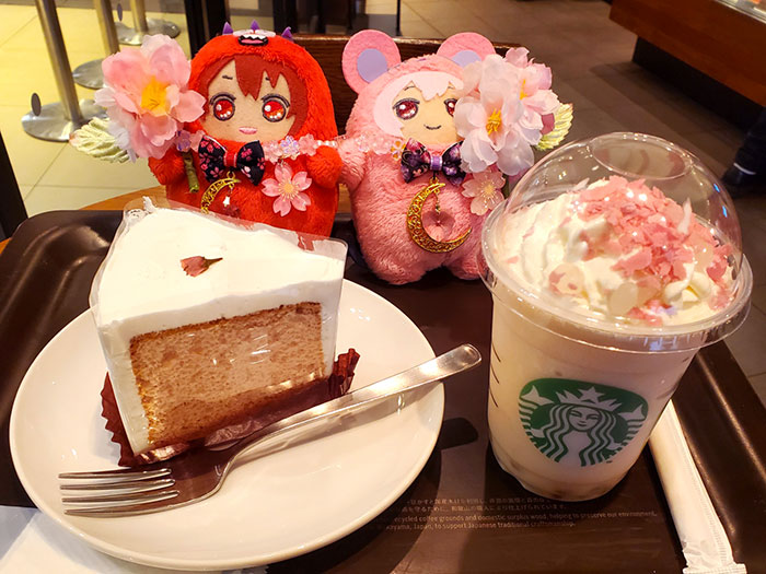 もして来ました。 私、下手くそなので、全然上手く撮れないんですけどね💦みんな、本当に上手く撮ってるよね。 花見だんご🌸🍡フラペチーノがとてもおいしかったです😋🍴💕 桜🌸のシフォンケーキ🍰は毎年食べているけれど、やっぱりおいしい😋🍴💕 桜🌸の季節はしばらくちまちま通ってしまいそうです……。 ![]() | |