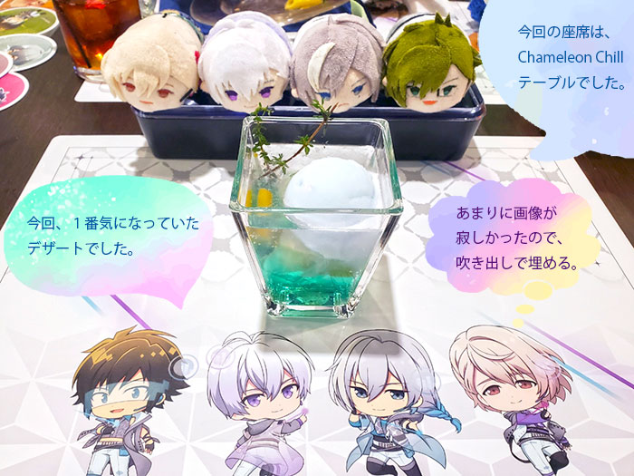 カメチルのメニューを頼むつもりだったので、今回は席も カメチルだったので、よかったです😊😊😊 ただ、食事がラストオーダー20分前になっても運ばれて 来なくて、さすがに問い合わせしたら、忘れ去られていた ようで、最後の方にいろいろ掻き込む羽目になりました。 カメチルのメニューは、全般的に好みの味でした😋🍴💕 ただ、カメチルだけではお腹が空きすぎて、Good Good Gamesの食事メニューも頼みました。 改めて、ぬい撮り📸があまりにも下手くそすぎて、本当に 毎回、悩むな💦 デザートが今回どう撮るのが正解か分からず、とりあえず、 空いた空間が寂しかったので、吹き出しを入れまくって みました。(そして、デコるセンスも皆無。) 楽しかったので、また会おうと約束して別れたのでした。 夜🌃だけだと、逆に短すぎた……。 |